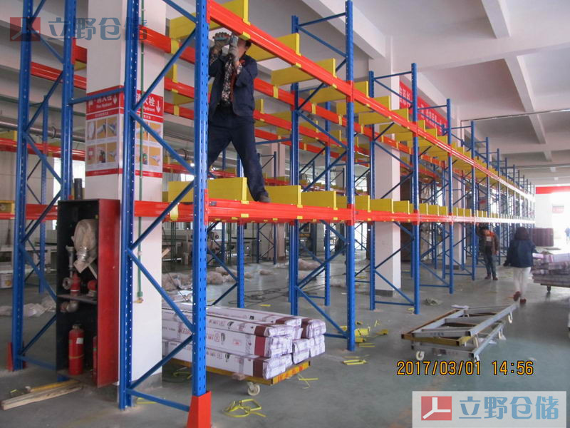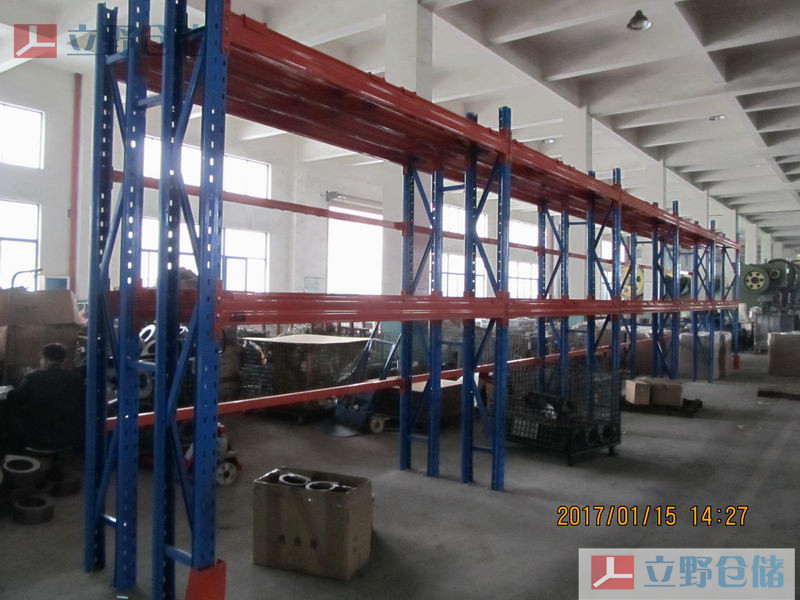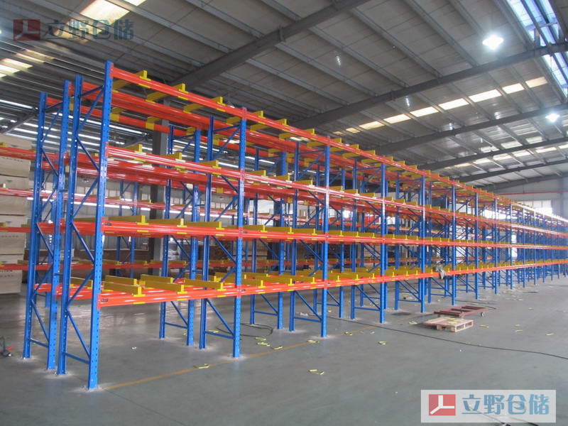 重型货架,又称横梁式货架,或称货位式货架,属于托盘货架类,在国内的各种仓储货架系统中最为常见一种货架形式。以立柱片+横梁形式的全组装结构,结构简明有效。可根据存储单元集装设备的特性加装隔档、工字跨梁、井字跨梁、钢层板(木层板)、网层板、仓储笼导轨、竖向跨梁等附件。满足不同单元集装设备形式的货物存储。此类货架在高位仓库和超高位仓库中应用最多(自动化立体仓库中货架大多用此类货架)。