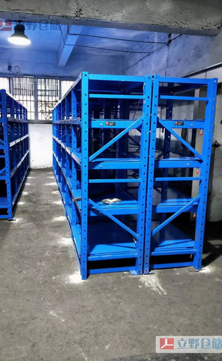 模具货架又称模具架或抽屉式货架,主要存放各种模具物品,根据层载能力要求分为轻型模具货架和重型模具货架。货架顶部可配置移动葫芦车,以方便模具的起吊。