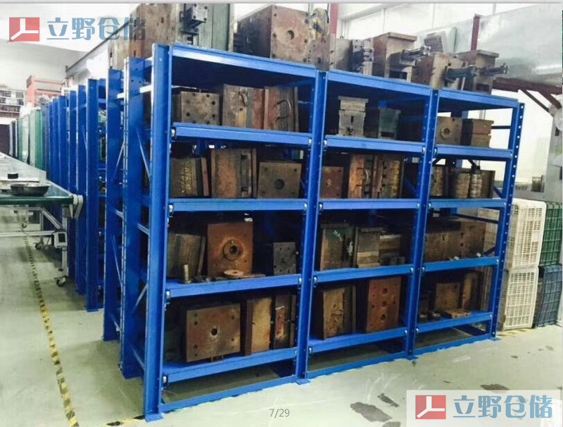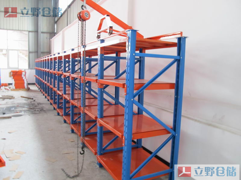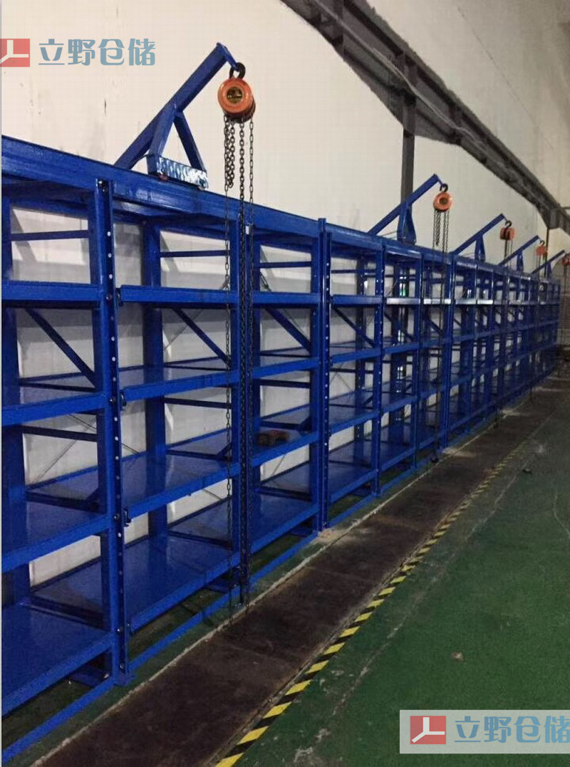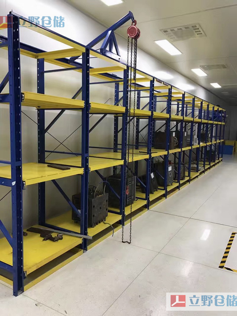 模具货架又称模具架或抽屉式货架,主要存放各种模具物品,根据层载能力要求分为轻型模具货架和重型模具货架。货架顶部可配置移动葫芦车,以方便模具的起吊。