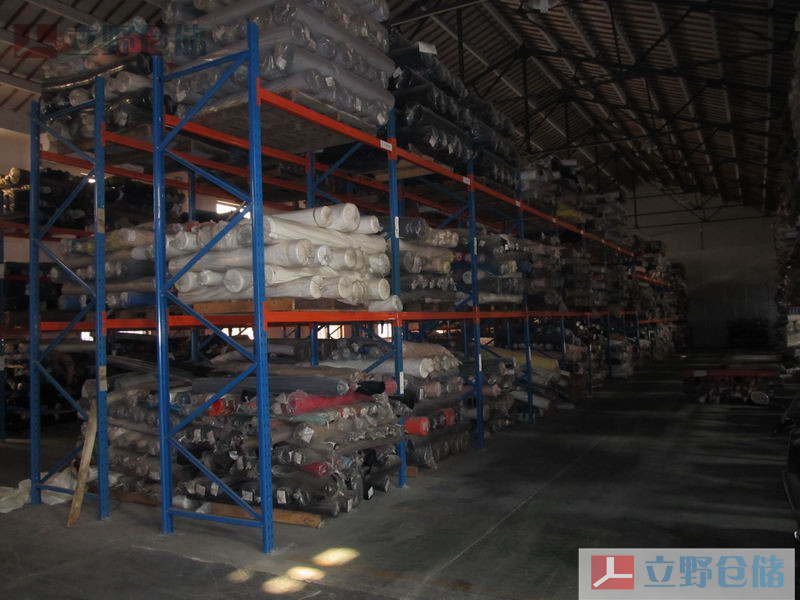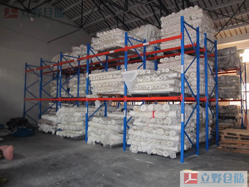 重型面料货架采用的是横梁式重型货架结构,将面料置于托盘上或面料框内,然后用叉车将托盘(面料框)挑起,再放入货架上的一种存取方式。根据承载量的不同,货架上可配备井字跨梁等辅件产品,以达到安全高效的作用。