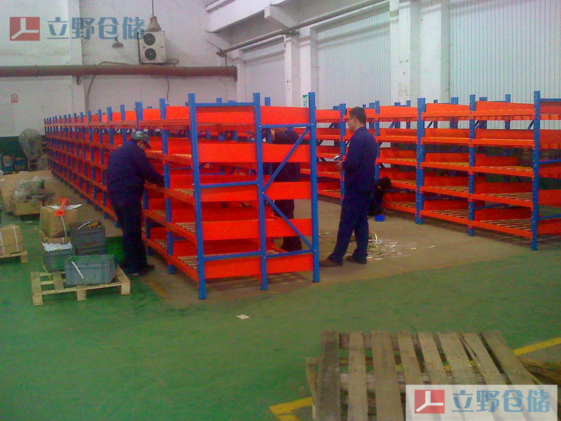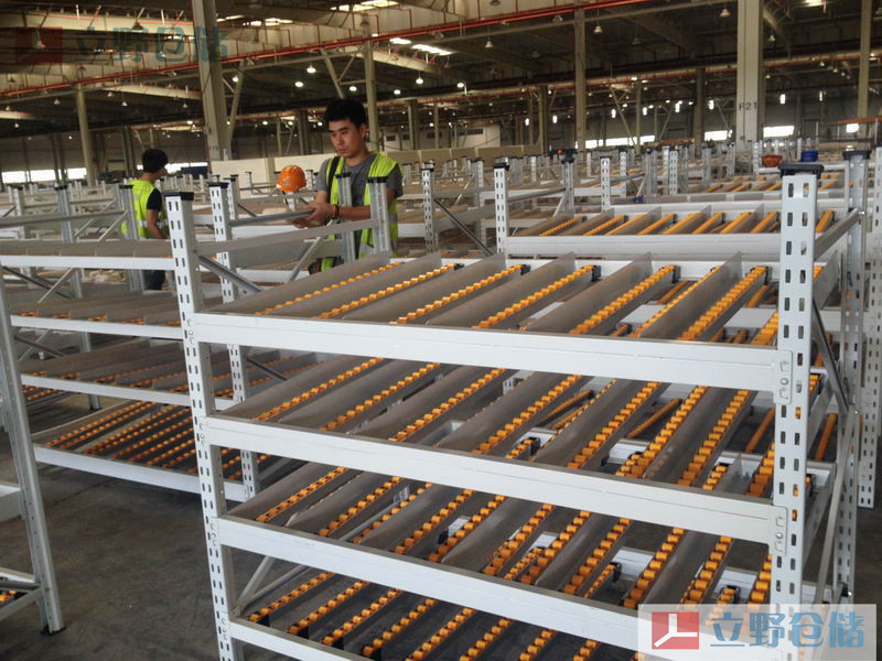 2、采用滚轮式铝合金或钣金流利条,呈一定坡度放置。