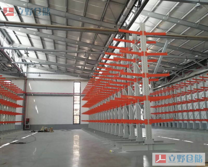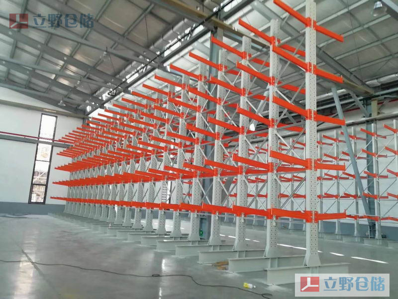 5、悬臂货架可由叉车、行车和人工存取,一般摆放长形管状物及环形物体为主。