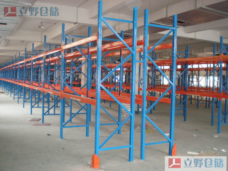 重型货架,又称横梁式货架,或称货位式货架,属于托盘货架类,在国内的各种仓储货架系统中最为常见一种货架形式。以立柱片+横梁形式的全组装结构,结构简明有效。可根据存储单元集装设备的特性加装隔档、工字跨梁、井字跨梁、钢层板(木层板)、网层板、仓储笼导轨、竖向跨梁等附件。满足不同单元集装设备形式的货物存储。此类货架在高位仓库和超高位仓库中应用最多(自动化立体仓库中货架大多用此类货架)。
